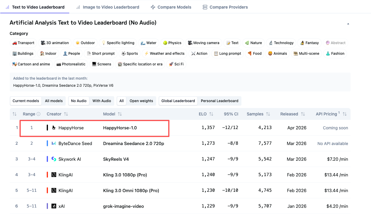 There is also a confirmed media pattern around the model’s positioning. Secondary coverage is describing HappyHorse-1.0 as a top or top-ranked AI video model. One example in the notes is the DEV Community article title: “Who Developed HappyHorse-1.0? The Behind-the-Scenes Story of the Open-Source Dark Horse Storming the AI Video Generation Throne.” But that is still headline-level coverage. The supplied excerpt does not include the underlying benchmark data, benchmark methodology, or direct ranking table details.
